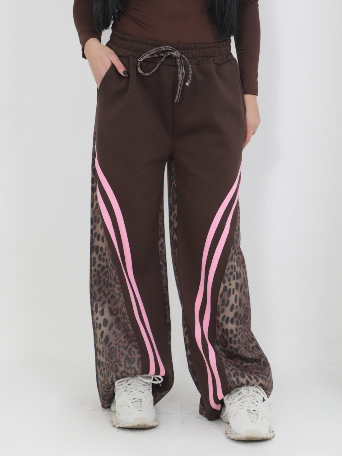 Pantalone maculato con bande rosa