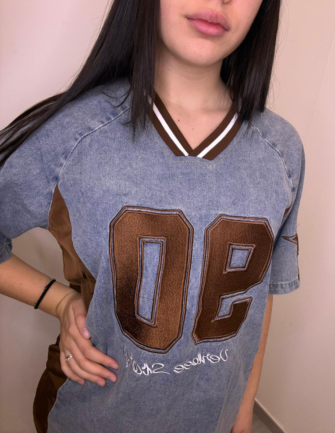 Maglia college in denim UG367